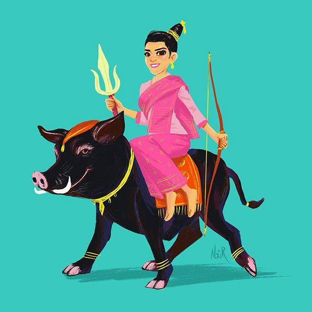 Songkan starts on April 14, and Nang Sangkhan is represented by the Sunday princess, Nang Haksod Thevi. During the parade this year, Nang Sangkhan rides a wild boar and armed with a trident and bow.